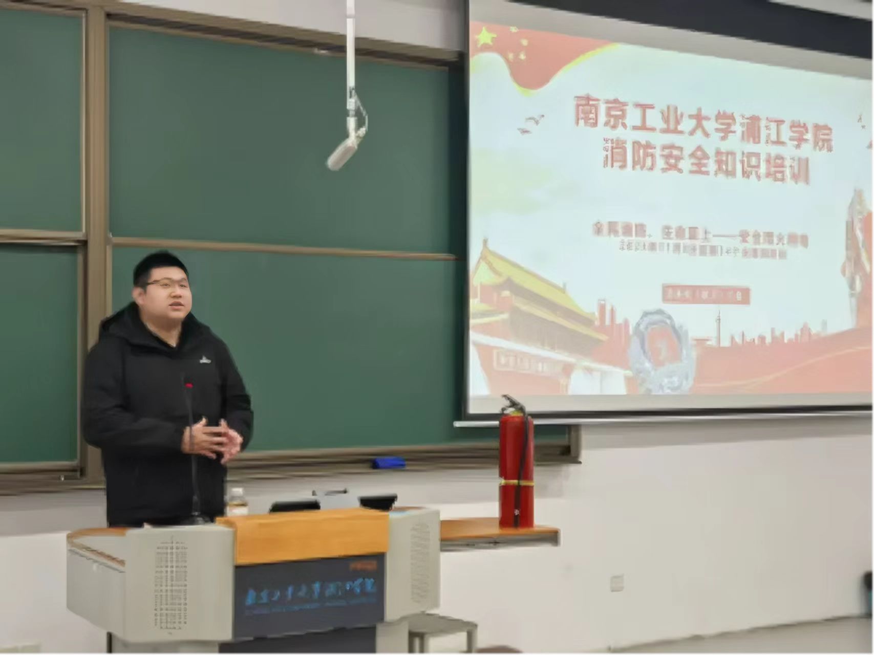 总务处牵头联合学工处、经管学院等多部门,开展了多场次的消防安全专题讲座。保卫科王磊老师结合近年来典型校园火灾案例,深入浅出剖析火灾成因与防范要点,细致讲解了消防安全隐患排查、灭火器材的操作规范,以及火场应急逃生技巧等核心知识。有效填补了师生的消防安全认知盲区,为后续实操训练奠定了坚实基础。