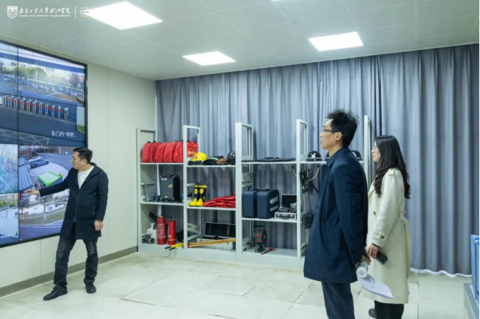 检查组首先查阅了学校安全相关资料。随后,在李建顶副处长等相关人员陪同下,检查组前往学生事务综合服务中心、图书馆、教学楼、危化品仓库、国际酒店与饮食文化管理厨房实训室、东门、学生宿舍、校园警务室、二期食堂等场所实地检查,重点对消防设施、安全标识、食品安全、化学品管理等进行了逐一检查。